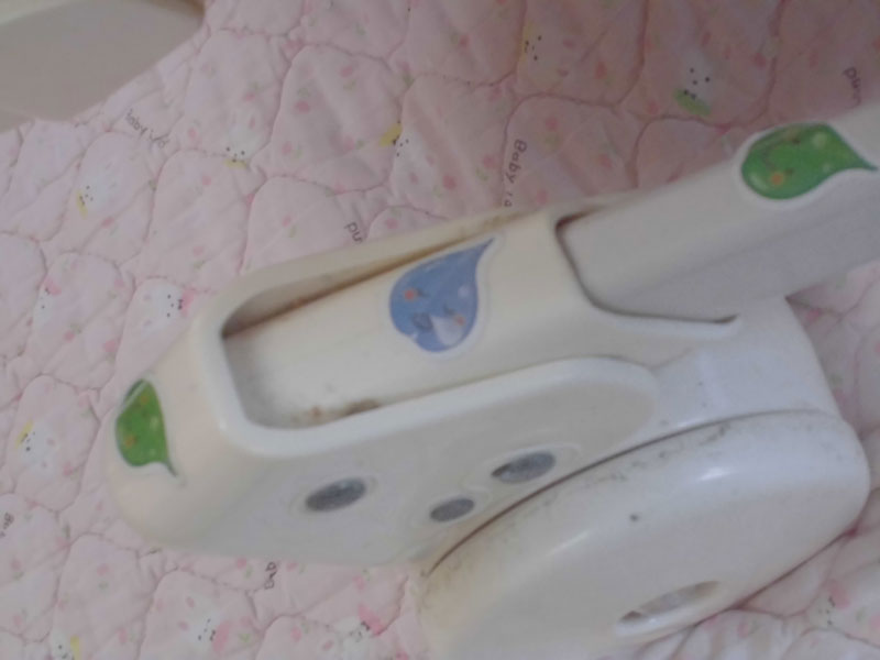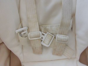腰ベルトのシミは、離乳食をがんばった跡でしょうか。