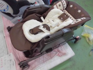 本日はお客様からベビーカーとチャイルドシート、ベビーラック、お布団が届きました。