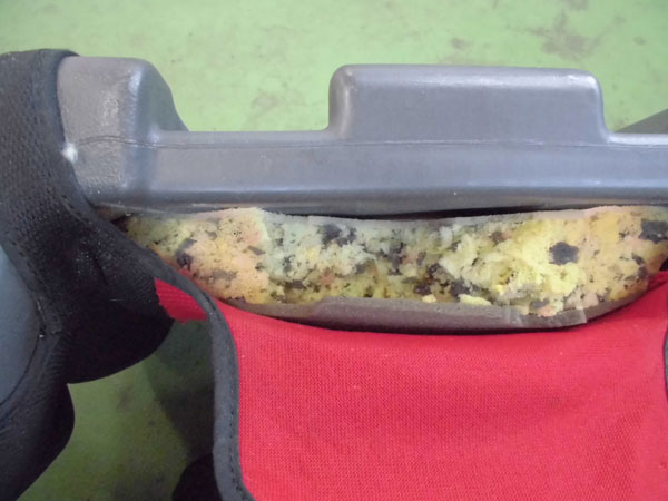 こちらのチャイルドシートは中の劣化が進んでしまっており、状態チェック後にお客様にご連絡いたしました。