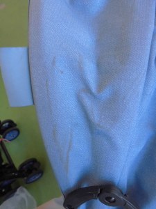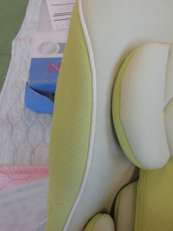 かなり広範囲にシミができてしまっていたチャイルドシートですが、色も明るくなり、とてもきれいになりました。