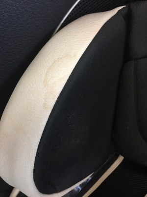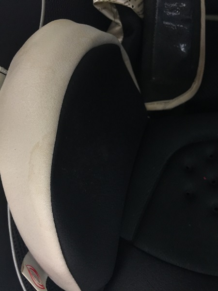 チャイルドシートのヘッドの横部分に、シミができてしまっています。