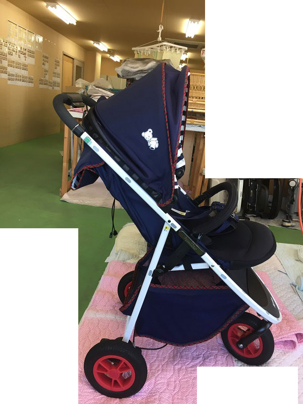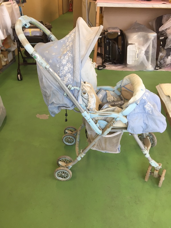 ピンクの外国製ベビーカーは、シミ抜き・カビ取り・お急ぎ便で承っております。