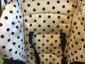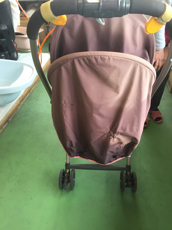 本日はお客様からベビーカーが届きました!手ごわそうな汚れ、カビがありますので、カビ取りオプションを承っております。