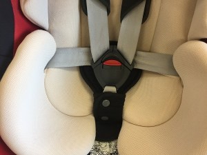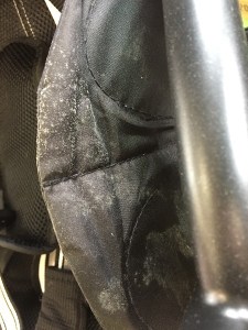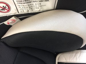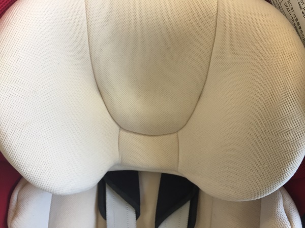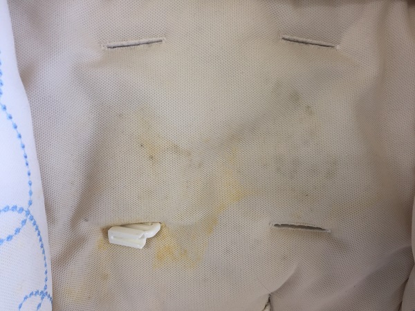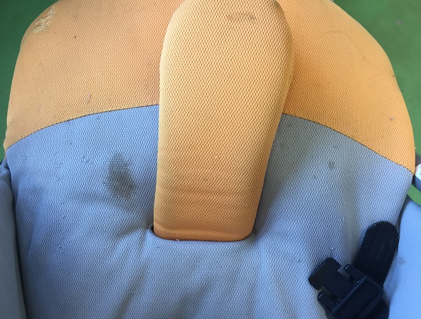 画像では模様と混ざって見えにくいのですが、チャイルドシートの両脇にシミがあるのがわかるでしょうか。
