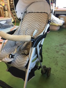 赤ちゃんの戻したものがこびりついていたベビーカーも、この通りきれいになりました!仕上がりましたクリーニング品は、これから梱包をしてお届け致します。