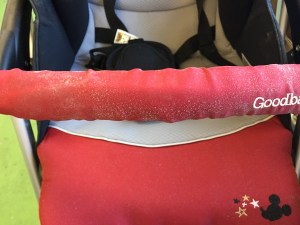 ミッキー柄のかわいいベビーカーですが、フロントカバーにカビが……。