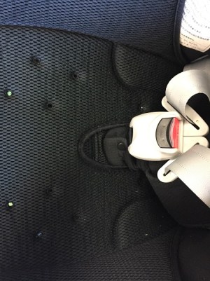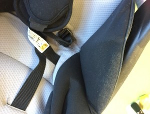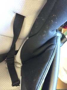 肩ベルトとシートのお尻の部分に汚れが見えます。