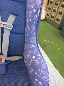 模様がかわいいチャイルドシートですが、倉庫などにしまわれていたのでしょうか。