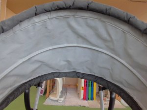 こちらのベビーカーは、ホロの内側にカビと日焼けがあります。