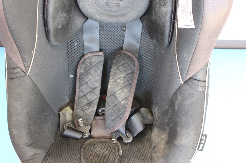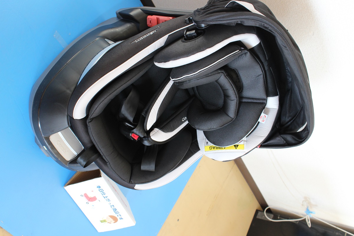 本日はお客様からベビーカーとチャイルドシートが届きました!こちらのチャイルドシートのヘッドパットや股カバー、ベルト等に汗ジミが目立ちます。