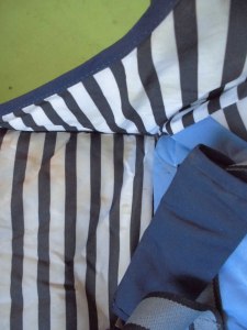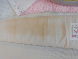 お色がマリンネイビー風でとてもかわいいのですが、お尻のところにシミができてしまっています。